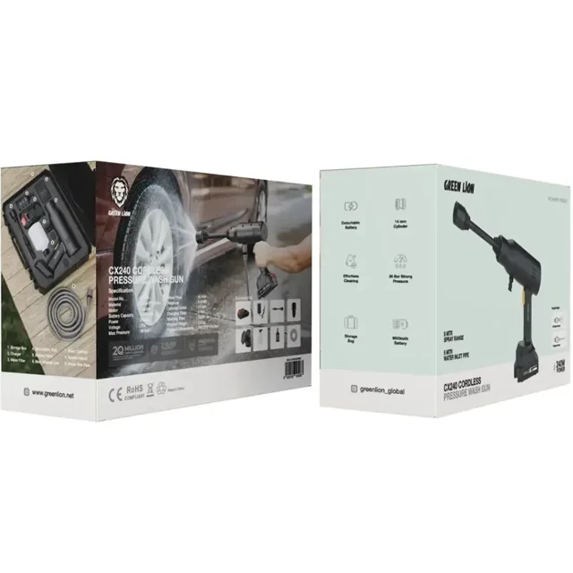 کارواش شارژی گرین لاین مدل CX240 با فشار ۳۶ بار، دستگاهی قدرتمند و قابل حمل برای شستشوی آسان خودرو، موتورسیکلت و اطراف خانه است. طراحی سبک و باتری قوی این دستگاه استفاده بیدردسر و بدون نیاز به کابل برق را ممکن میسازد.