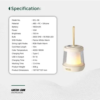اگر به دنبال نوری هستید که نه فقط یک روشنایی ساده بلکه فضا را زنده کند یا اگر توی کمپ، مهمونی، اتاق خواب یا حتی بالکن، یه حس خاص و گرم به محیط اختصاص بدید ،Green Lion Lumex LED با ریسه داخلی ۱۰ متری و قدرت نور 150 لومن با 95 عدد LED RGB و SMD از مشخصات فنی این چراغ قوه هست. روشنایی چشمنواز، با رنگهای متنوع و قابل تنظیم برای هر حالوهوایی مناسب بوده و سه حالت نور اصلی: Flame (شعلهای)، White (سفید)، Warm (گرم) از فضای رمانتیک تا نور کاربردی همه در این دستگاه جمع شده است.