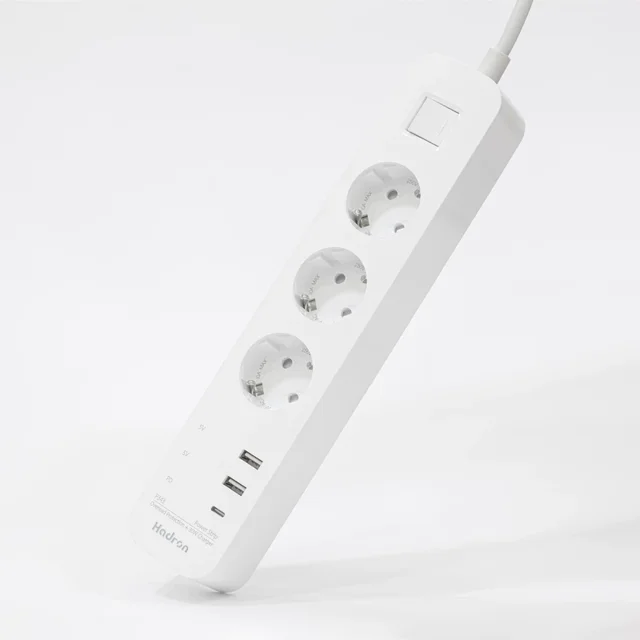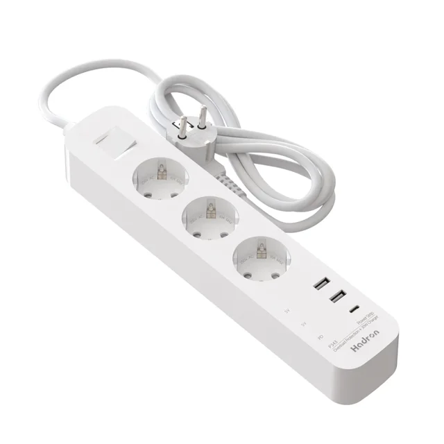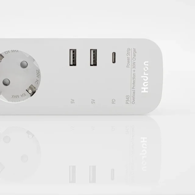 چندراهی برق و شارژر PD هادرون مدل P343 با جریان 10 آمپر، طراحی شده برای تامین انرژی ایمن و سریع دستگاههای مختلف، مجهز به پورتهای متعدد برای شارژ همزمان، مناسب استفاده در منزل و محل کار با کیفیت ساخت بالا و عملکرد پایدار.
