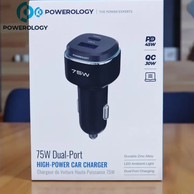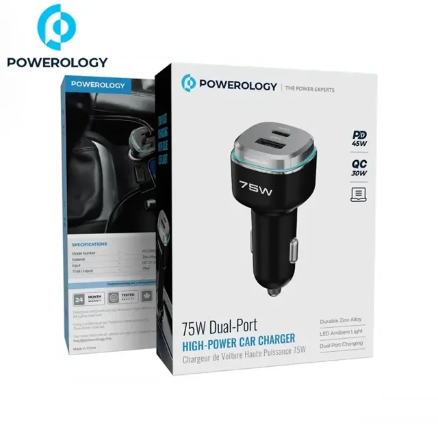 CAR CHARGER A+C PORT WITH C TO C CABLE 75W POWEROLOGY