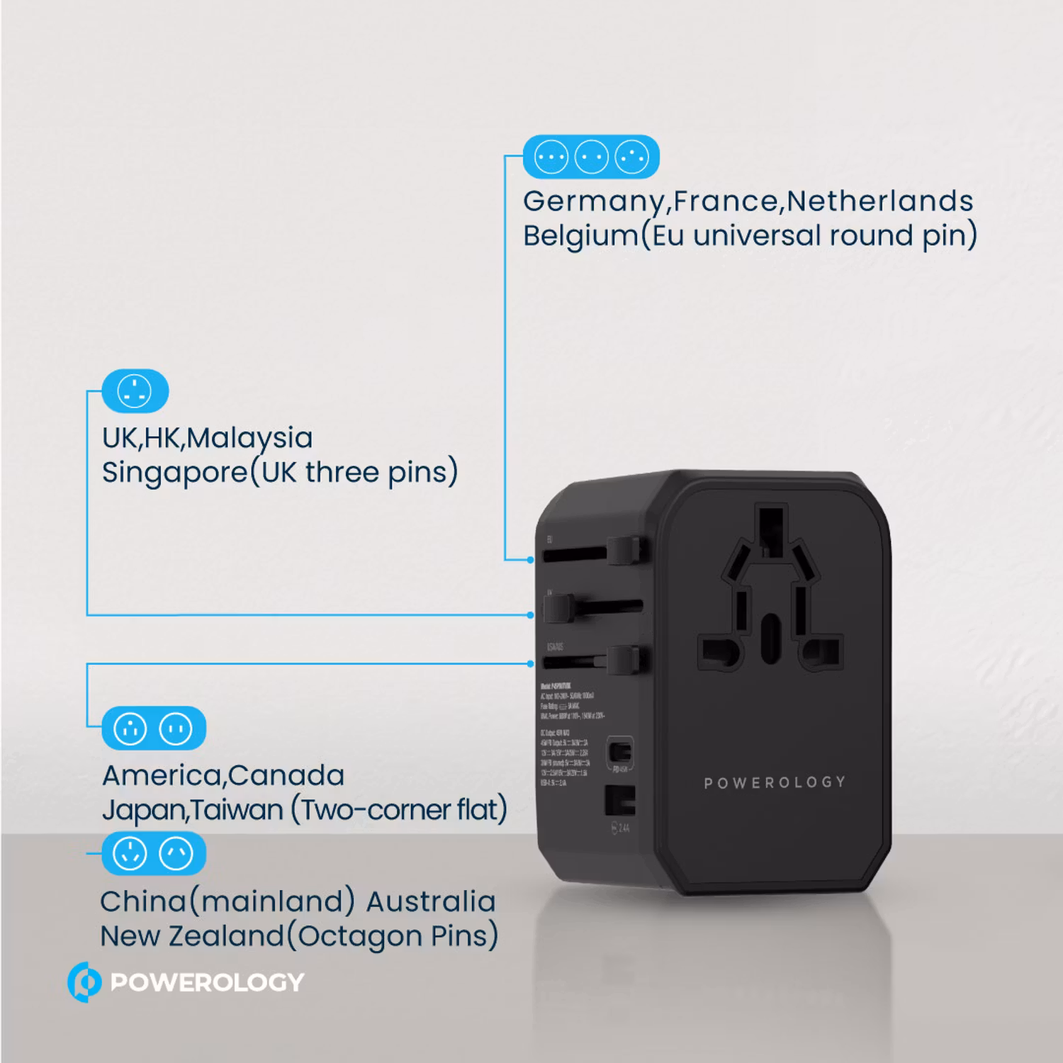 شارژر دیواری پاورولوژی مدل PD 45W UNIVERSAL TRAVEL با توان 45 وات، مناسب برای شارژ سریع و ایمن انواع دستگاهها است. طراحی یونیورسال و جمعوجور آن، امکان استفاده آسان در مسافرتها را فراهم میکند و سازگاری گستردهای با دستگاههای مختلف دارد.