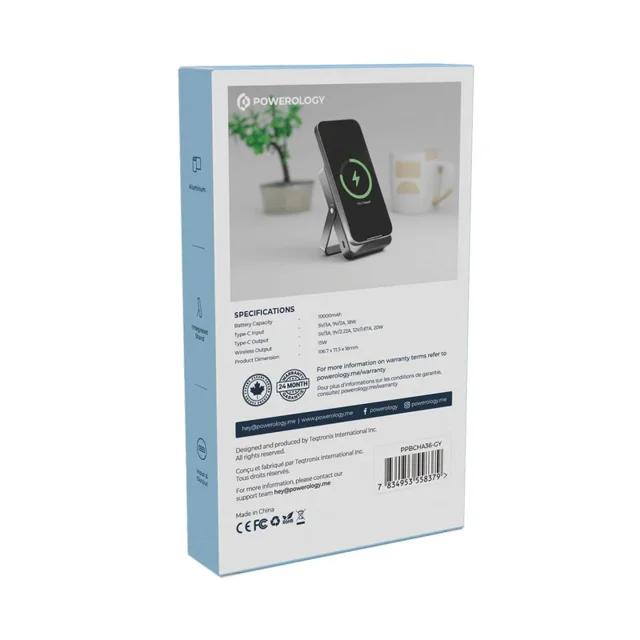 پاوربانک Powerology 10000mAh Magsafe با سطح شیشهای، نیازهای شارژ شما را در حال حرکت برآورده میکند. این پاوربانک با ظرفیت باتری 10000 میلیآمپر ساعت، خروجی Type-C آن با پشتیبانی از فناوری شارژ سریع ،توان 20 وات، شارژ سریع و کارآمدی را ارائه میدهد. قابلیت شارژ بیسیم این پاوربانک، بدون نیاز به کابل با خروجی حداکثر 15 وات برای دستگاههای سازگار فراهم میکند. این پاوربانک برای تماشای ویدیو یا مکالمات ویدیویی در حین شارژ ایدهآل است. پایه داخلی آن امکان استفاده بدون نیاز به دست را فراهم میکند.