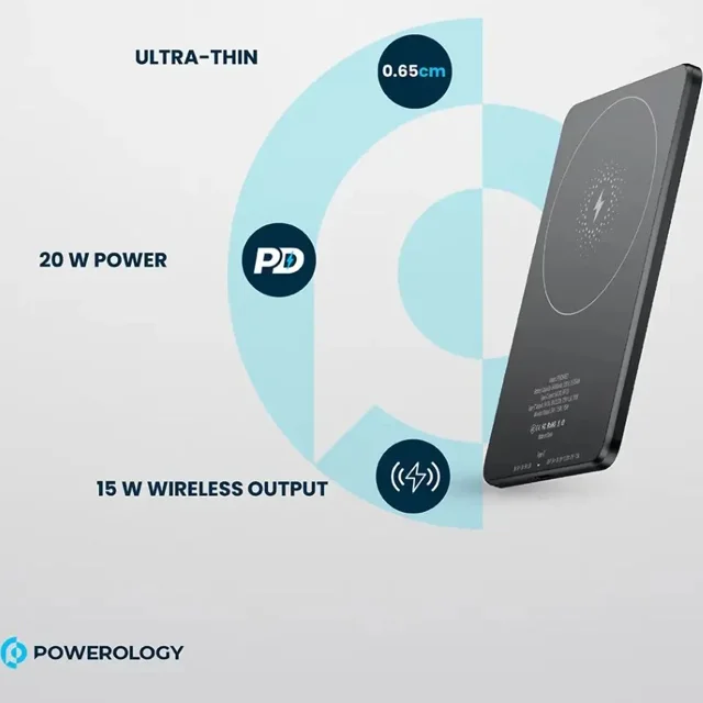 پاوربانک مگ سیف 5000 پاورولوژی مدل ULTRA SLIM با توان 15 وات، طراحی باریک و سبک، شارژ سریع و ایمن دستگاههای سازگار با مگ سیف را ارائه میدهد. این پاوربانک ایدهآل برای استفاده روزمره و حمل آسان در کیف یا جیب است.