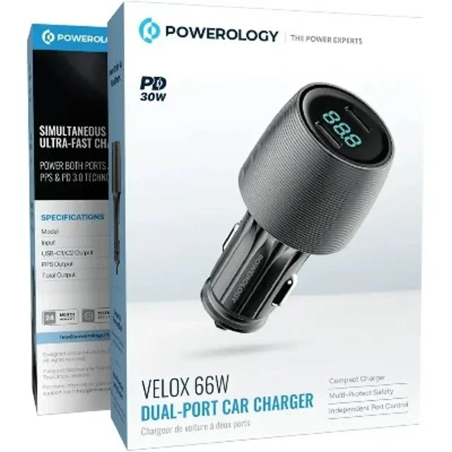 CAR CHARGER DOUBLE TYPE-C PORT 66W VELOX POWEROLOGY