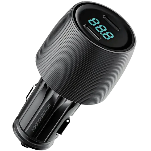 شارژر فندکی پاورولوژی VELOX با توان 66 وات دارای پورتهای A و C و کابل C to C، مناسب برای شارژ سریع و ایمن انواع دستگاههای هوشمند در خودرو، طراحی جمعوجور و مقاوم برای استفاده آسان در سفرها و محیطهای مختلف.